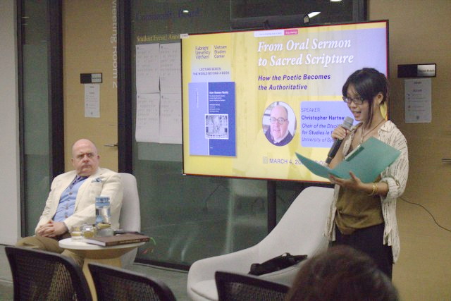 It is known that the precious opportunity for this presentation at Fulbright University came about thanks to the enthusiastic introduction and connection from Rev. Thượng Cảnh Thanh - former President of CDOM. Through this bridge, Professor Christopher Hartney and Dr. Nguyễn Nam - Director and Lecturer at the Center of Vietnamese Studies, Fulbright University - collaborated to create a meaningful space for academic and religious cultural exchange.