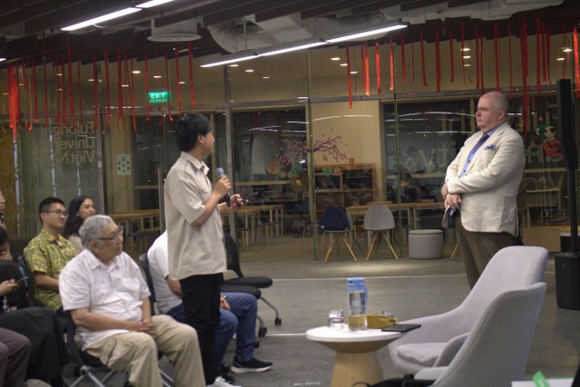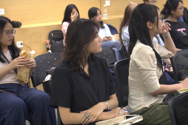 The program was conducted entirely in English, attracting the participation of over 30 students from Fulbright University. The atmosphere in the hall was incredibly lively, especially during the Q&A session. Students took turns asking insightful questions about the life and religious practice of Đức Hộ Pháp Phạm Công Tắc, as well as the philosophies of life and the cosmology of Cao Đài religion.