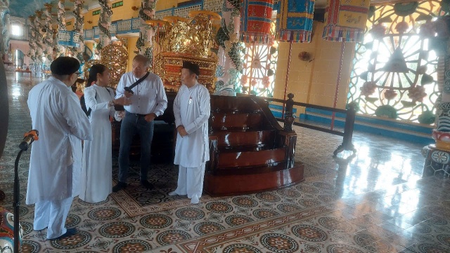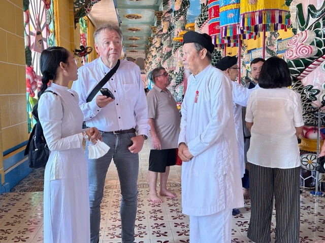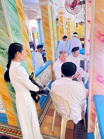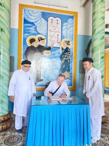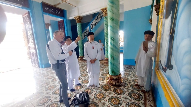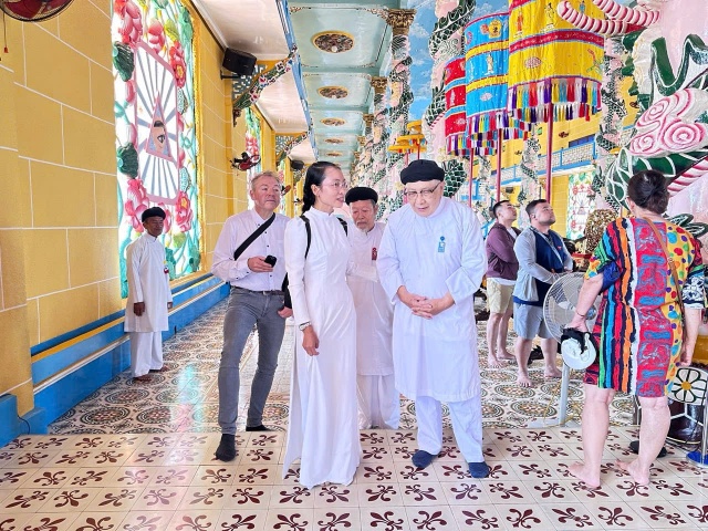 The delegation was officially received and guided by Archbishop Ngoc Hong Thanh, Chief of the Interior Ministry of the Caodai Sacerdotal Council.