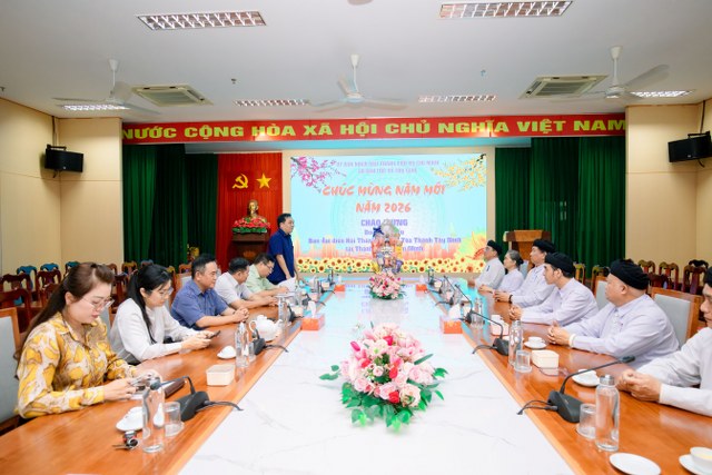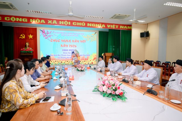 Nhân dịp đón chào Tết Nguyên đán - Xuân Bính Ngọ 2026, trong hai ngày 17 và 18 tháng 12 năm Ất Tỵ (tức ngày 04 và 05/02/2026), phái đoàn Ban Đại diện Hội Thánh Cao Đài Tòa Thánh Tây Ninh tại TP.HCM do Giáo sư Thượng Sang Thanh – Trưởng Ban Đại diện Hội Thánh làm Trưởng đoàn đã đến thăm và chúc Tết các cơ quan lãnh đạo Đảng, Chính quyền, Mặt trận Tổ quốc và lực lượng vũ trang Thành phố Hồ Chí Minh.