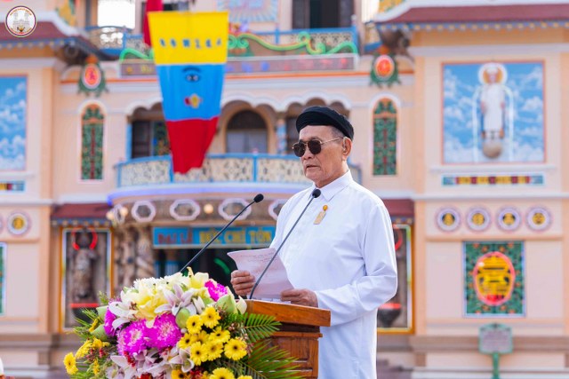 Đại huynh Quyền Thái Chánh Phối sư phát biểu chào mừng và cảm ơn các quan khách đã nhận lời mời đến tham dự Đại lễ Đức CHÍ TÔN năm Bính Ngọ – 2026.
