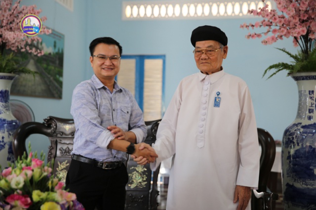 According to the schedule of the delegation, at 10:00 am, His Eminence Cardinal Thuong Tam Thanh, Chairman of the Cao Dai Sacerdotal Council, welcomed the film crew and gave an interview at the Cardinal’s Office.