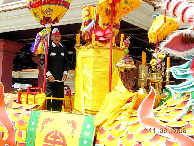 What follows is the ceremony for carrying the coffin to the hearse Prajna Paramitta Boat (called Thuyen Bat Nha – Dragon Boat of Cao Dai). The meaning of this boat is to transport the soul over the sea of deliverance in order to reach Nirvana. This ceremony should be processed as follows: