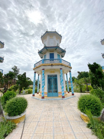 These octagonal tombs are reserved only for the 3 high dignitaries of the Hiep Thien Dai (Legislative and Judicial Branch), who are the HO PHAP, THUONG PHAM and THUONG SANH, the 7 high dignitaries of the Cuu Trung Dai (Executive Branch), who are the GIAO TONG, 3 CENSOR-CARDINALS and 3 CARDINALS (of 3 branches : Confucianism, Taoism and Buddhism), and last, the FEMALE CARDINAL.