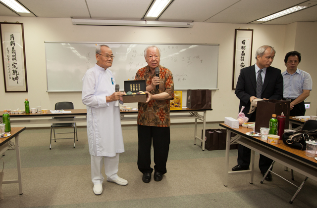 At 9:30am on July 23rd 2013, the Caodai delegation came back to Tao Yuan Headquarters to participate at a seminar. There the Caodai delegates were greeted by His Excellency Chen, Chao-Chen in his 16th floor office. After a round of tea, H.E Chen invited the delegation down to the 13th floor to a meeting room where there were about 40 participants already present. In his opening remark, H.E Chen mentioned that he had the honor to meet Cardinal Thuong Tam Thanh and the Cao Dai delegation in Japan at the Oomoto Spring Festival. In that first meeting, he felt a deep impression in his heart about Cao Dai and today, from a far away Viet Nam, the Cardinal and his delegation accepted his invitation to come to Taiwan to participate at our Tao Yuan ceremony, so it was such an honor.