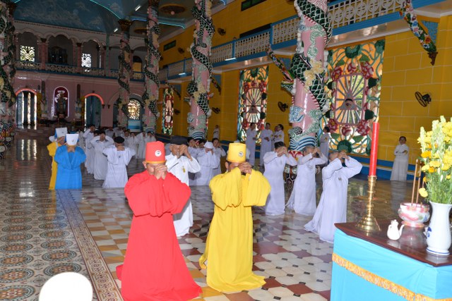According to the ordination service program, the Cao Dai believers and dignitaries gathered in the temple, and standing duly and respectfully in their places, prayed to God and divine Beings.