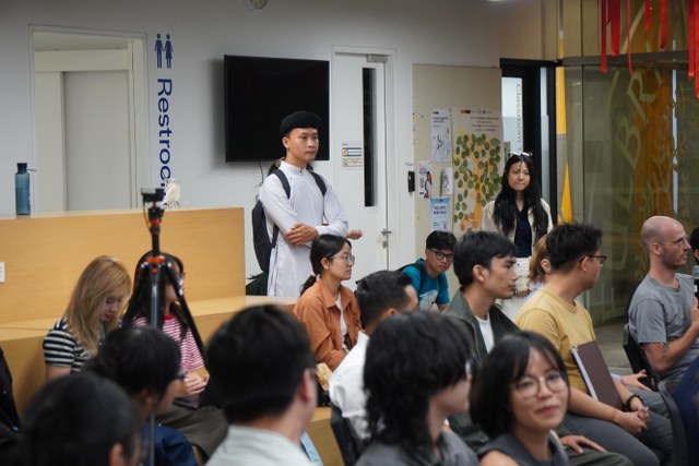 The program was conducted entirely in English, attracting the participation of over 30 students from Fulbright University. The atmosphere in the hall was incredibly lively, especially during the Q&A session. Students took turns asking insightful questions about the life and religious practice of Đức Hộ Pháp Phạm Công Tắc, as well as the philosophies of life and the cosmology of Cao Đài religion.