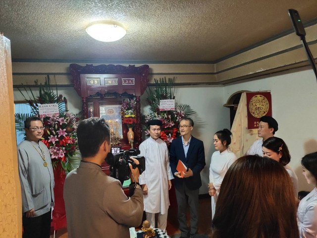 After that, Cao Dai Sub-dignitary Nguyen Tuan Em gave the Delegation a warm welcome from Reverend Thuong Canh Thanh (President of Cao Dai Overseas Missionary) and provided a brief introduction to the Cao Dai history, philosophy and worship rituals at adherent’s house, also the future plan of Taipei Congregation.