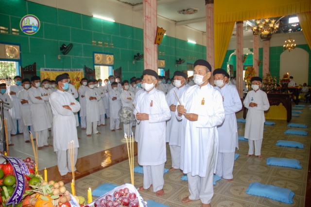 Nơi đây, trước giờ hạ huyệt, quý Chức sắc, chức việc và quý anh em bạn đạo tỏ lời phân ưu cùng tang gia hiếu quyến và ngậm ngùi tiếc thương một vị Chức sắc đã tận tâm phục vụ đạo từ lúc 18 tuổi đến nay.