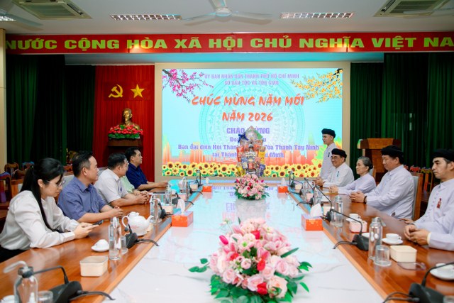Nhân dịp đón chào Tết Nguyên đán - Xuân Bính Ngọ 2026, trong hai ngày 17 và 18 tháng 12 năm Ất Tỵ (tức ngày 04 và 05/02/2026), phái đoàn Ban Đại diện Hội Thánh Cao Đài Tòa Thánh Tây Ninh tại TP.HCM do Giáo sư Thượng Sang Thanh – Trưởng Ban Đại diện Hội Thánh làm Trưởng đoàn đã đến thăm và chúc Tết các cơ quan lãnh đạo Đảng, Chính quyền, Mặt trận Tổ quốc và lực lượng vũ trang Thành phố Hồ Chí Minh.