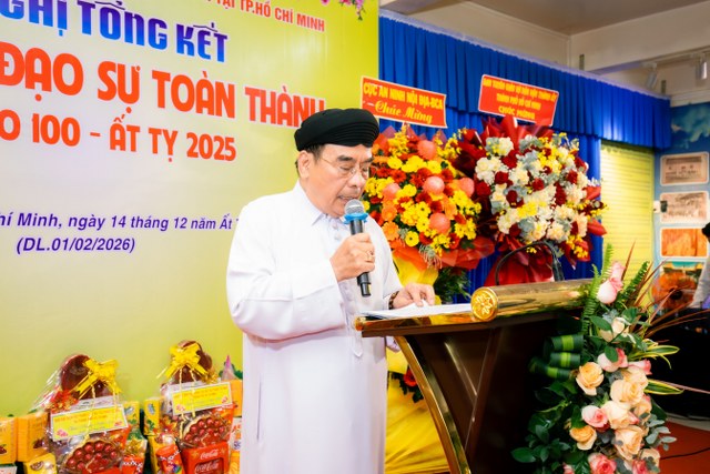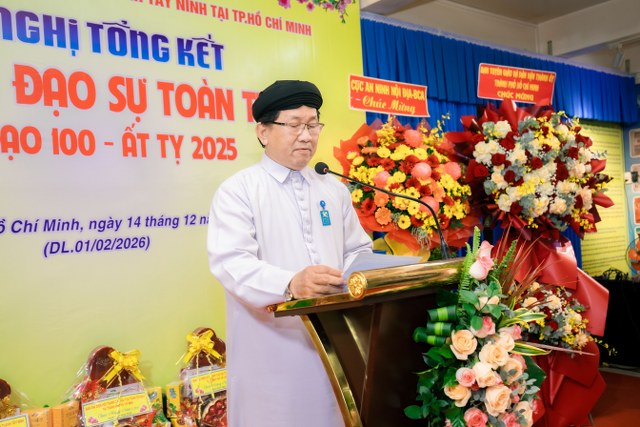 Vào lúc 08 giờ ngày 14 tháng 12 năm Ất Tỵ (DL: 01/02/2026), tại Văn phòng Ban Đại diện Hội Thánh (Thánh Thất Sài Gòn), Ban Đại diện Hội Thánh Cao Đài Tòa Thánh Tây Ninh tại TP.HCM đã long trọng tổ chức Hội nghị Tổng kết Đạo sự năm Ất Tỵ 2025 (Niên đạo 100) và đề ra phương hướng hành đạo năm Bính Ngọ 2026 (Niên đạo 101).