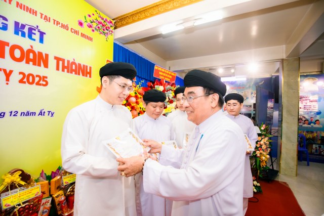 -Phát triển nhơn sanh: Trong năm qua, toàn thành phố đã có 740 tín đồ nhập môn cầu đạo; thực hiện nghi thức Tắm Thánh cho 1.024 nhi đồng và tổ chức lễ tang đúng nghi thức cho 341 vị Chức sắc, Chức việc, đồng đạo quy vị.