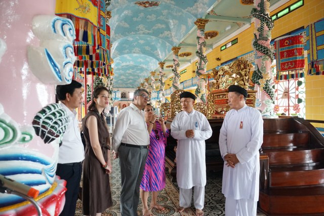 Thừa uỷ nhiệm của Ngài Đầu sư Chưởng quản Hội Thánh, Phối sư Ngọc Hồng Thanh - Thượng Thống Lại viện tiếp đón và hướng dẫn Ngài Đại sứ tham quan ngôi thờ Đức CHÍ TÔN và giới thiệu tổng quan về đạo Cao Đài Toà Thánh Tây Ninh.