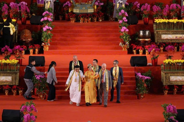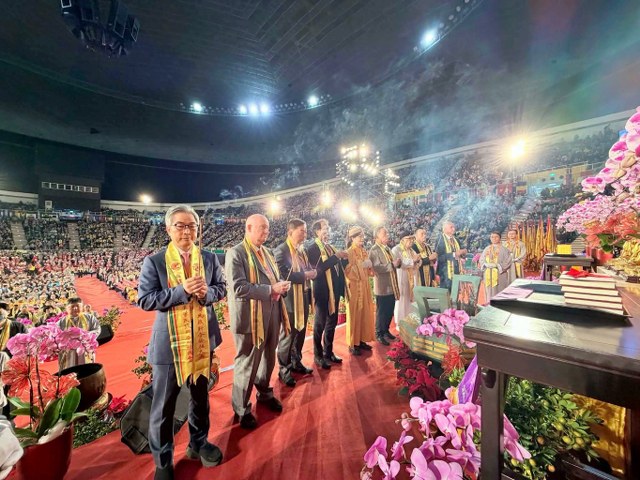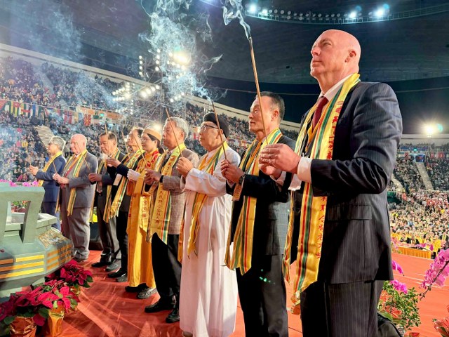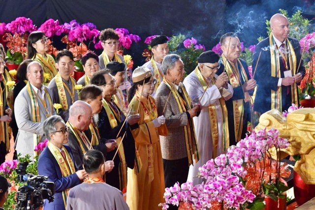 Đại diện các khách mời quốc tế, các tôn giáo bạn, và các Đạo tràng cũng được mời lên lễ đài dâng hương và hoa, cầu nguyện cho nhân loại được sống trong hòa bình và hạnh phúc.