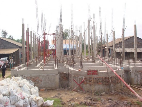 Thánh Thất được xây dựng hơn 1 năm, nhưng chỉ làm được phần móng và lên sắt đổ cột thì đã hết kinh phí, còn mắc nợ rất nhiều, công thợ làm cầm chừng, cho nên Ban Cai Quản chỉ trông chờ có những tấm lòng hảo tâm của đồng đạo, Mạnh Thường Quân giúp thì công việc xây dựng mới chóng hoàn thành.
