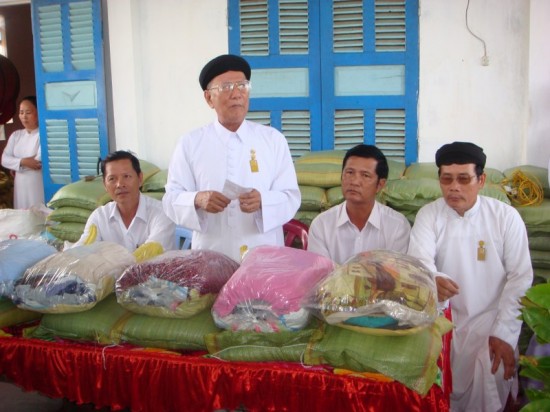 Lời mở đầu buổi tặng quà vị Cai Quản Họ Đạo Thạnh Hóa: “Đồng đạo nơi đây thì ít lại nghèo, đây củng là lần đầu tiên Họ Đạo Sài Gòn chiếu cố đến thăm và tặng quà cho đồng bào ruột thịt nghèo và để lời chào mừng, cảm ơn đoàn và chính quyền địa phương các cấp”.