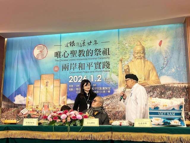 Trong hai ngày (2/1 và 3/1/2026), Học Viện Duy Tâm Thánh Giáo tổ chức Ngày Hội Nghị quốc tế với chủ đề “Truy nguyên nguồn cội – 20 năm Đại Lễ Cầu Nguyện Bách Họ Tổ Tiên và Hòa Bình Cho Hai Bờ Eo Biển Đài Loan và Thế Giới”.