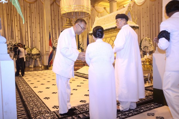 Thủ tướng Campuchia Hun Sen liền ủy nhiệm cho Bà Mel Som Ol, Phó Thủ Tướng Thường trực hẹn tiếp Đoàn lúc 7 giờ sáng ngày 05-11-2012, sắp xếp việc Đoàn đến viếng tang. Đoàn đã chuẩn bị đặt tràng hoa viếng tang (tràng hoa kết toàn loại bông trắng).