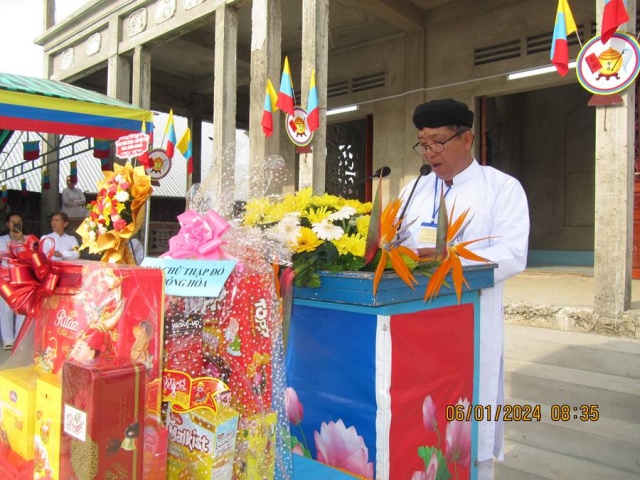 Vào lúc 08 giờ sáng ngày 25 tháng 11 Quý Mão (Dl; 06-01-2024), Phối Sư Thái Côn Thanh, Quyền Thái Chánh Phối Sư, thừa ủy nhiệm của Ngài Đầu Sư Chưởng Quản Hội Thánh, dẫn đấu phái đoàn Hội Thánh đến Họ Đạo huyện An Minh tỉnh Kiên Giang chứng lễ An vị Long Vị Đức Phật Mẫu ngôi Điện Thờ Đức Phật Mẫu của Họ Đạo.