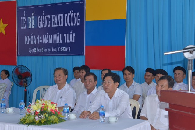 Hôm nay, ngày 18-9 Mậu Tuất (Dl. Thư Sáu 26-10-2018) Ngài Đầu Sư Thượng Tám Thanh, Chưởng Quản Hội Thánh, quý Đại Huynh, Đại Tỷ Thường trực Hội Thánh và quý Chức Sắc Thượng Thống, Phụ Thống, Quản văn Phòng Cửu Viện nam, nữ đến Hạnh Đường dự chứng lễ Bế Giảng Hạnh Đường khóa 14.