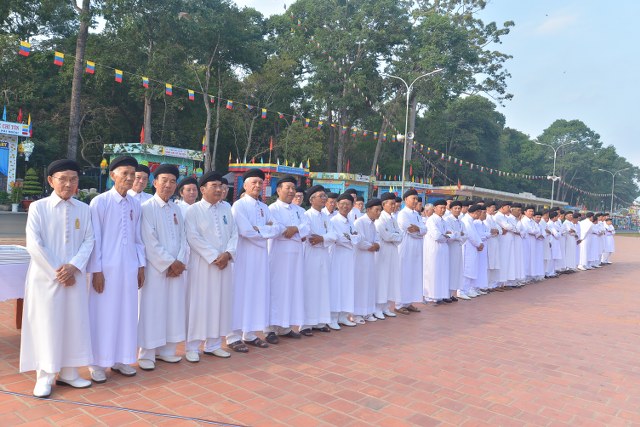 08 giờ: Ngài Đầu Sư Chưởng Quản Hội Thánh cùng quý Chức Sắc Phối Sư Thái Côn Thanh, Quyền Thái Chánh Phối Sư, Phối Sư Ngọc Thưởng Thanh, Quyền Ngọc Chánh Phối Sư, và Phối Sư Hương Đắt, Quyền Nữ Chánh Phối Sư, hướng dẫn Phái Đoàn viên chức chính quyền đến sân lễ như sau :
