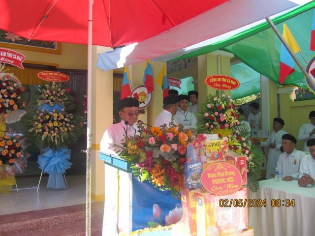 Vào lúc 08 giờ sáng ngày 24-3 Giáp Thìn (dl. 02-5-2024), thừa ủy nhiệm của Ngài Đầu Sư Thượng Tám Thanh - Chưởng Quản Hội Thánh Cao Đài Tòa Thánh Tây Ninh, Đại huynh Phối Sư Thái Côn Thanh - Quyền Thái Chánh Phối Sư dẫn đầu phái đoàn Hội Thánh đến Họ Đạo xã Tắc Vân, Thành phố Cà Mau, tỉnh Cà Mau chứng lễ Khánh thành ngôi Điện Thờ Đức Phật Mẫu của Họ Đạo.