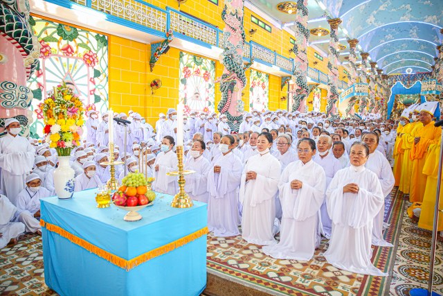Kết thúc buổi lễ, Ngài Đầu sư, ba vị Qu. Chánh Phối sư và toàn thể chư vị có mặt bái lễ Đức CHÍ TÔN và các Đấng Thiêng liêng.
