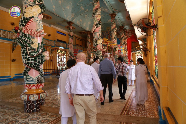 Tại Đền Thánh, Phái Đoàn được Phối Sư Ngọc Hồng Thanh, Tổng Quản Văn Phòng Ngọc Chánh Phối Sư kiêm Thượng Thống Lại Viện, hướng dẫn và giải thích các hình ảnh thờ phượng, và cho Phái Đoàn tham dự thời cúng Ngọ thời. Sau đó mời đoàn về Trai Đường dùng cơm chay.