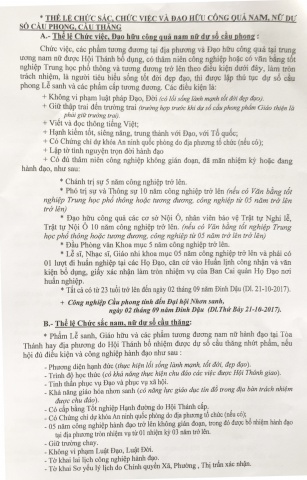 Phó Trị Sự và Thông Sự 10 năm công nghiệp trỡ lên (nếu có Văn bằng tốt nghiệp Trung học phổ thông hoặc tương đương, công nghiệp từ 05 năm trỡ lên